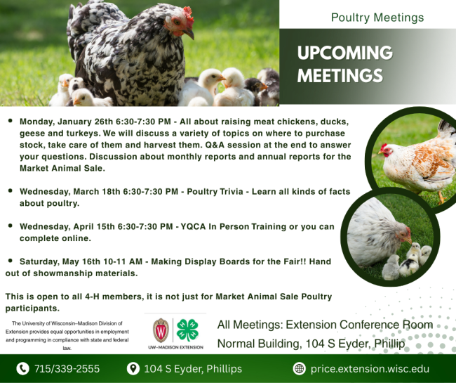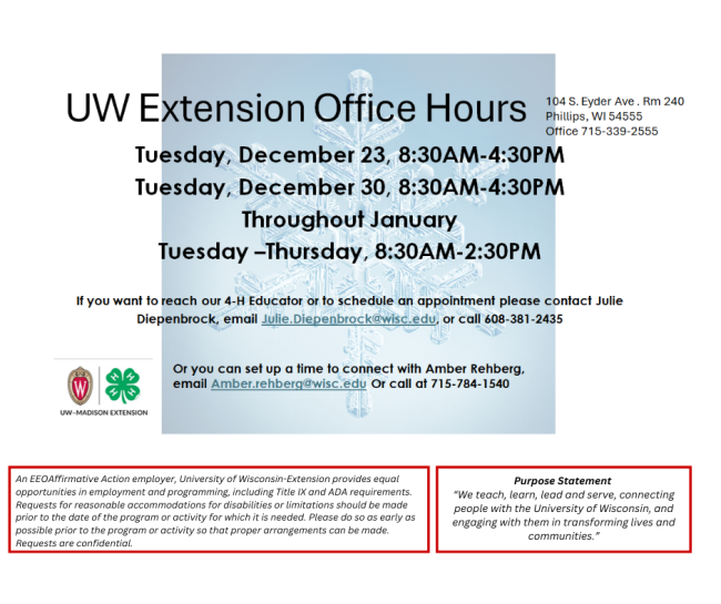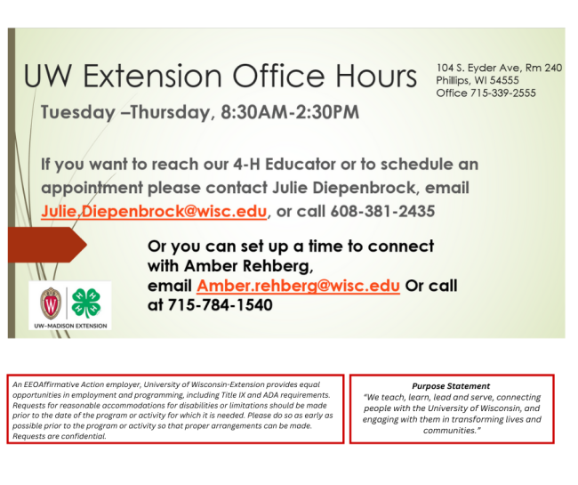 Water Testing Kits can also be picked up at the Price County Extension office.