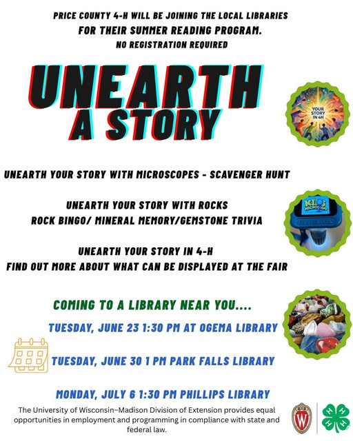The Price County 4-H Program and Julie Diepenbrock, 4-H educator will be at a Library near year sharing the story of our area youth.